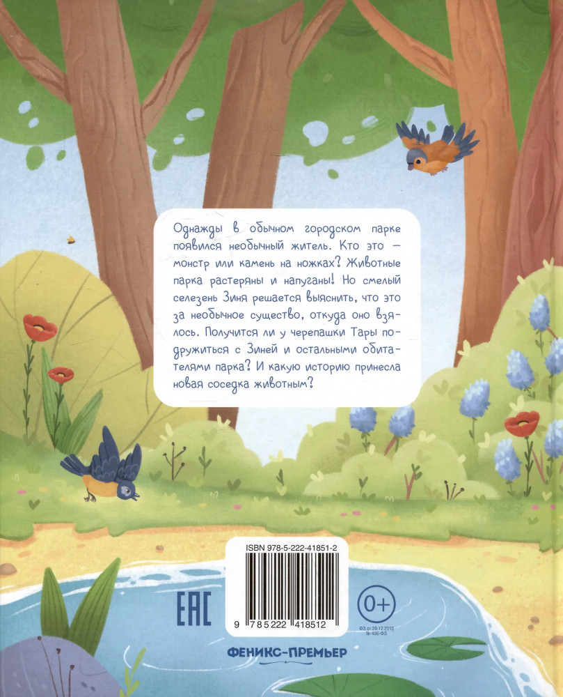 💳 Оплатить за товар можно при получении 🇰🇿 Есть бесплатная доставка по Казахстану от 1 дня 🎁 Копите бонусы с каждой покупки Серия: Сказочное детство Однажды в одычном городском парке появился неодычный житель. Кто это — монстр или камень на ножках? Животные парка растеряны и напуганы! Но смелый селезень Зиня решается выяснить, что это за неодычное существо, откуда оно взялось. Получится ли у черепашки Тары подружиться с Зиней и остальными обитаТелями парка? И какую историю принесла новая соседка животным? |