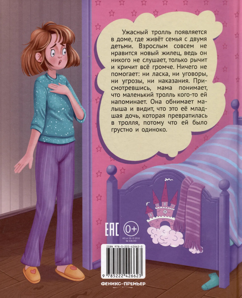 💳 Оплатить за товар можно при получении 🇰🇿 Есть бесплатная доставка по Казахстану 🎁 Копите бонусы с каждой покупки Серия: Сказочное детство Ужасный тролль появляется в доме, где живёт семья с двумя детьми. Взрослым совсем не нравится новый жилец, ведь он никого не слушает, только рычит и кричит всё громче. Ничего не помогает: ни ласка, ни уговоры, ни угрозы, ни наказания. Присмотревшись, мама понимает, что маленький тролль кого-то ей напоминает. Она обнимает малыша и видит, что это её младшая дочь, которая превратилась в тролля, потому что ей было грустно и одиноко. |