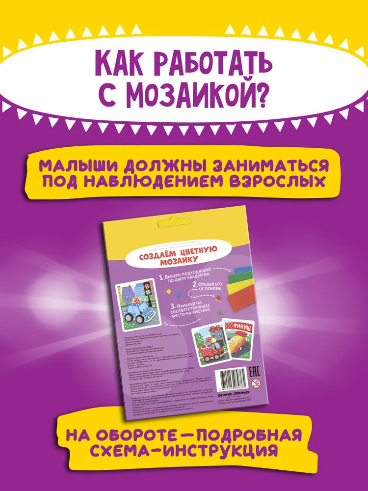 💳 Оплатить за товар можно при получении 🇰🇿 Есть бесплатная доставка по Казахстану от 1 дня 🎁 Копите бонусы с каждой покупки Создавайте вместе с ребенком цветную мозаику-аппликацию и погружайтесь в увлекательный мир творчества вместе с забавными героями! После создания мозаики, герои оживают! Разыгрывайте с ними сказочные сюжеты, придумывайте новые истории и развивайте воображение вашего малыша! Работа с наборами тренирует мелкую моторику малыша, щипковый захват и развивает творческое мышление, а также в легком формате знакомит его с базовыми цветами и формами. |
