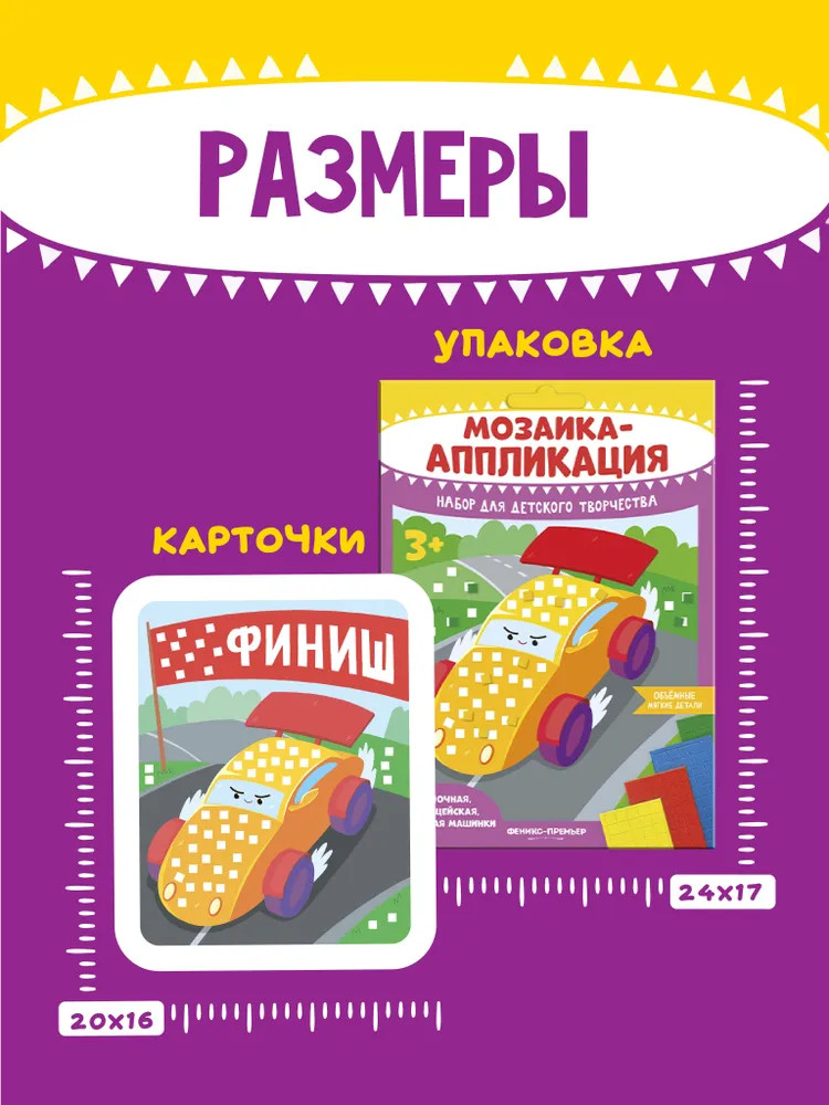 Мозаика-аппликация «Гоночная, полицейская, пожарная машинки»-20% +21