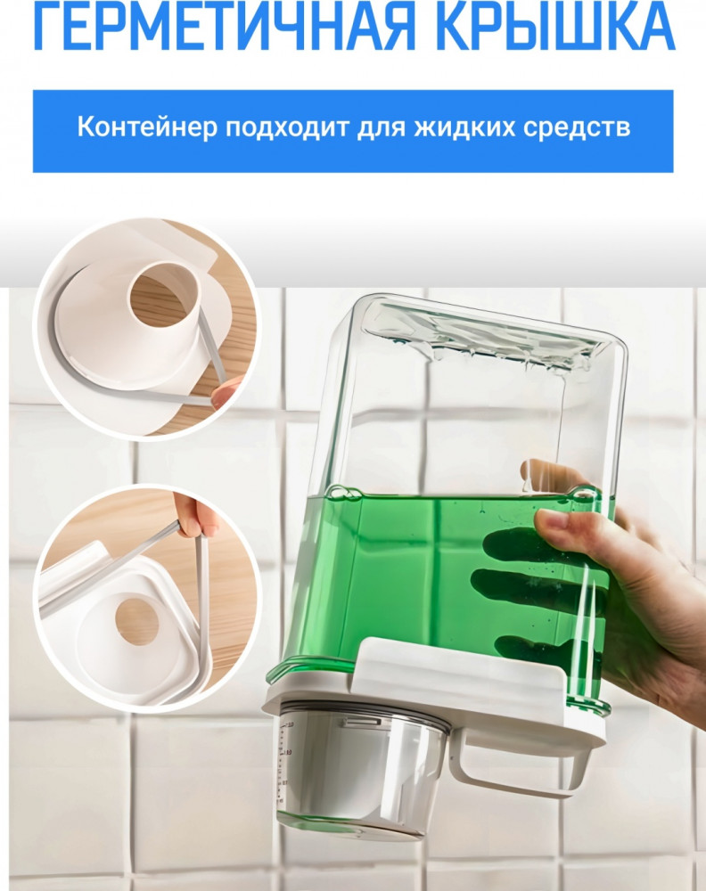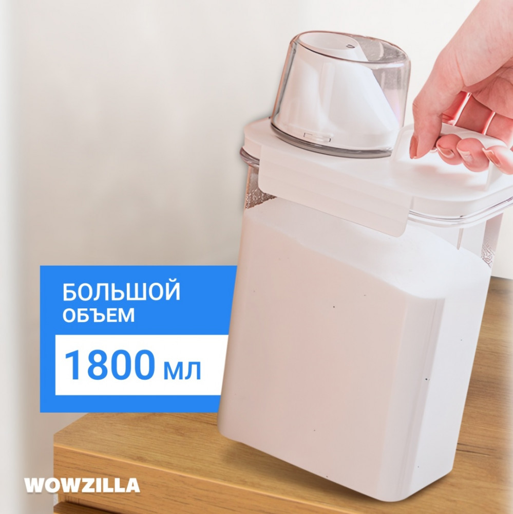 Контейнер для стирального порошка имеет герметичную крышку — это значит, что вы можете хранить в нем не только сыпучие продукты, но и использовать для геля для стирки или для кондиционера для белья. На крышке предусмотрена специальная разметка. Теперь вам не нужно искать емкость, чтобы отмерить нужное количество моющего средства — мерный стакан для порошка всегда под рукой.
