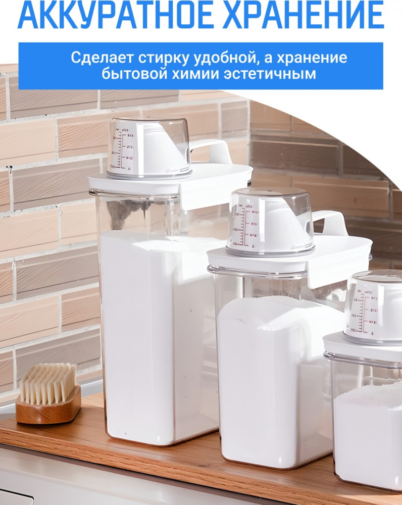 Такая емкость для порошка занимает меньше места по сравнению с обычными упаковками, поэтому подойдет даже для самых маленьких ванных комнат. Пластиковый контейнер для хранения имеет минималистичный дизайн и не создает визуального шума. Он не только отлично впишется в интерьер, но и украсит его.