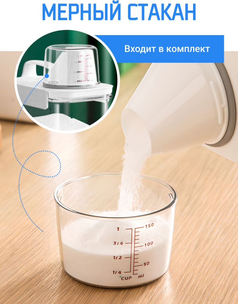 Этот универсальный контейнер станет незаменимым помощником на вашей кухне! Идеален для хранения различных сыпучих продуктов — круп, муки, сахара, специй и даже корма для домашних животных. Плотно прилегающая крышка с мерным колпачком обеспечивает защиту от влаги и посторонних запахов, сохраняя свежесть содержимого. Подходит также для хранения порошков, таких как стиральный или чистящий, и благодаря прозрачным стенкам вы всегда видите остаток продукта. Компактная форма легко помещается в шкаф и помогает поддерживать порядок. С этим контейнером хранение продуктов и корма становится максимально удобным!