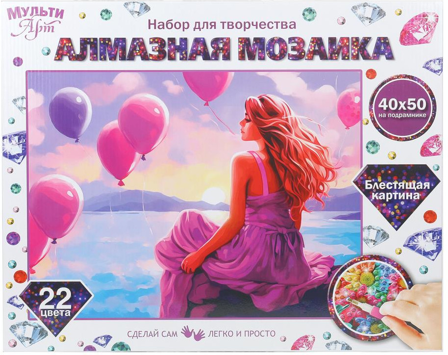 Multi Art Алмазная мозаика «Девушка у моря с шарами»-30%