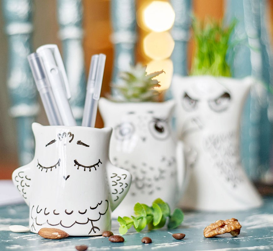 Купила такой набот с большой скидкой,так как 1й совушки-толстенькой нет,не жалею,очень красиво смотрятся возле компьютера-одна с цветущим кактусом,а другая с травкой:-),и мордочки я им рисую по настроению,покупкой очень довольна,спасибо flip:-*