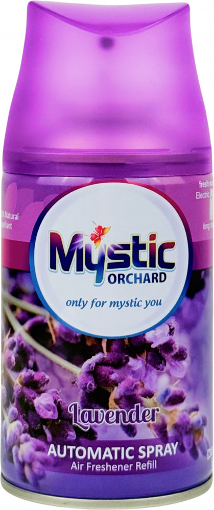 Освежитель воздуха Mystic Orchard «Lavender» — сменный баллон для автоматического распылителя с нежным ароматом лаванды. Он наполняет помещение тонким цветочным шлейфом, создавая атмосферу спокойствия, уюта и чистоты. Идеально подходит для использования в жилых комнатах, спальнях, ванных, офисах и других помещениях.
