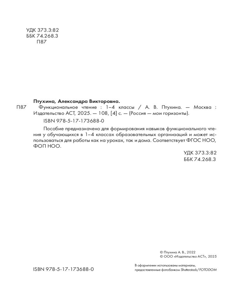 💳 Оплатить за товар можно при получении 🇰🇿 Есть бесплатная доставка по Казахстану от 1 дня 🎁 Копите бонусы с каждой покупки Серия: Россия — мои горизонты Пособие предназначено для формирования навыков функционального чтения у обучающихся в 1-4 классах образовательных организаций и может использоваться для работы как на уроках, так и дома. Соответствует ФГОС НОО, ФОП НОО. |
