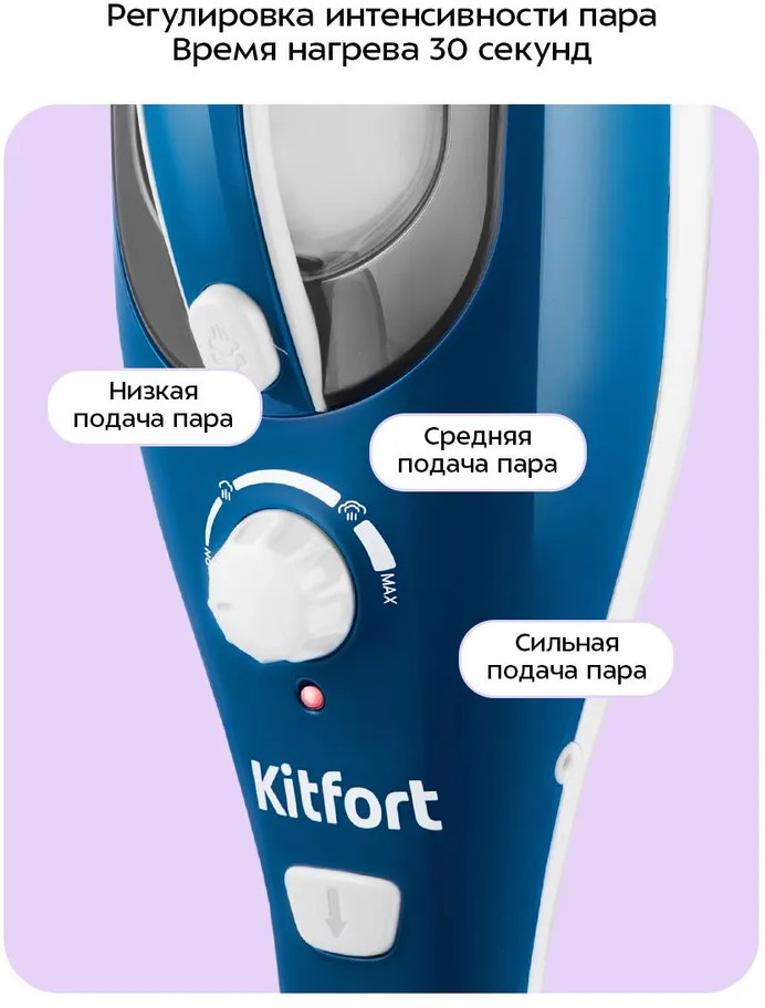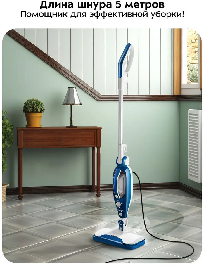 Паровая швабра КТ-1004 — это универсальное устройство, способное эффективно очищать поверхности от пыли и грязи благодаря мощной струе пара. Она также обладает способностью проводить дезинфекцию обрабатываемых поверхностей. Мощность — 1500 Вт. Выбор диапазона интенсивности подачи пара зависит от текущей задачи или материала, который вы собираетесь обрабатывать паром. Выбирайте низкую, среднюю или высокую подачу пара в зависимости от загрязнённой поверхности. Время нагрева 30 секунд.