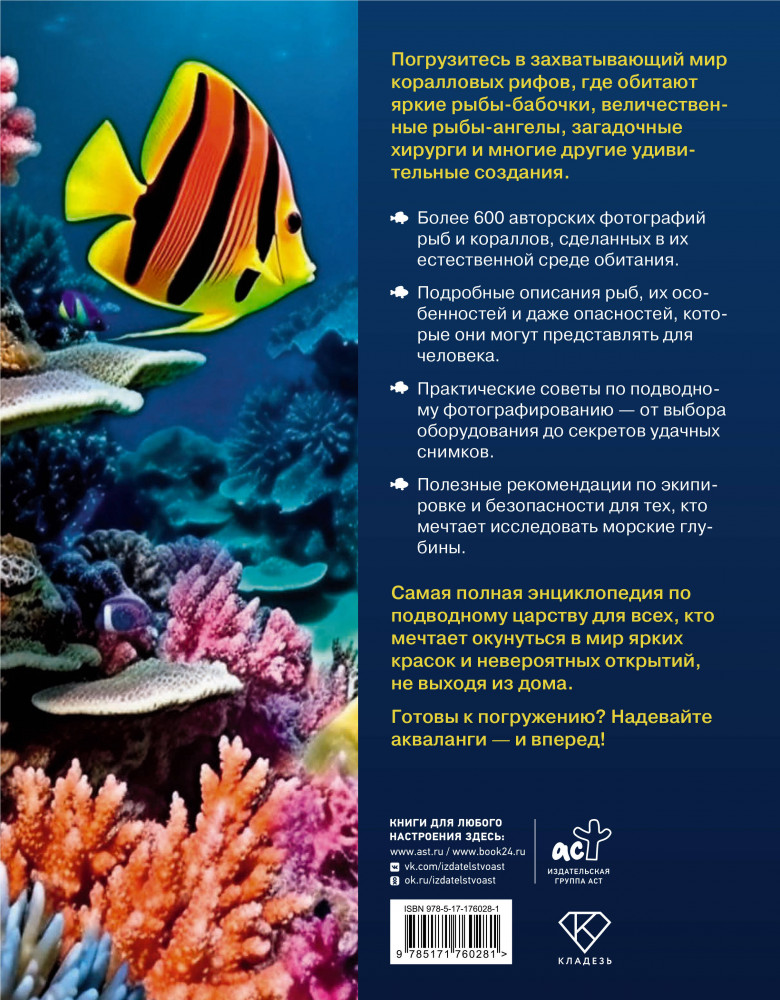 💳 Оплатить за товар можно при получении 🇰🇿 Есть бесплатная доставка по Казахстану от 1 дня 🎁 Копите бонусы с каждой покупки Серия: Популярная энциклопедия Погрузитесь в захватывающий мир коралловых рифов, где обитают яркие рыбы-бабочки, величественные рыбы-ангелы, загадочные хирурги и многие другие удивительные создания. |