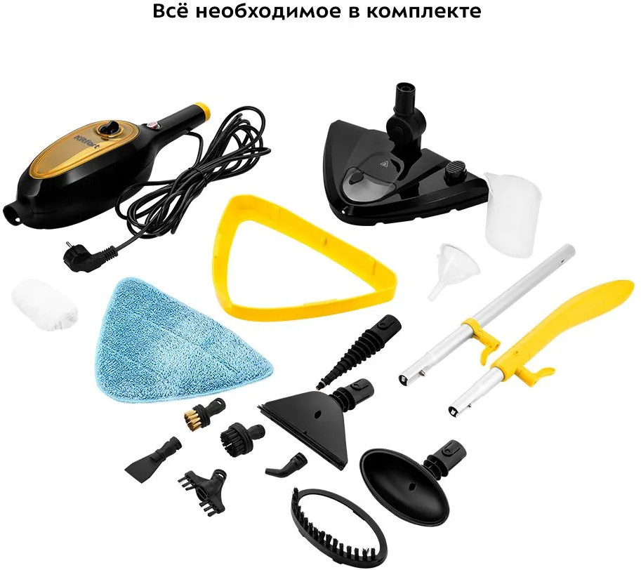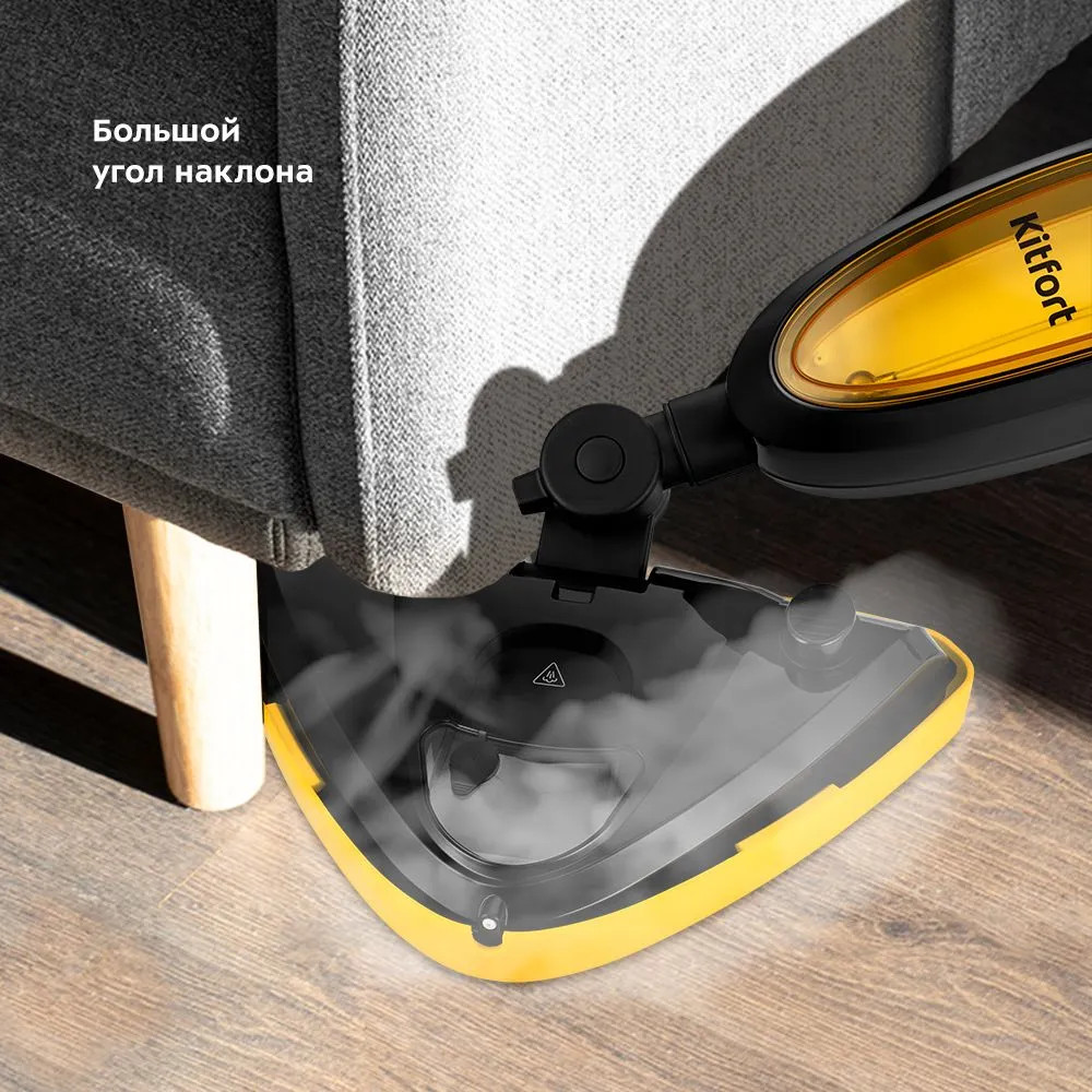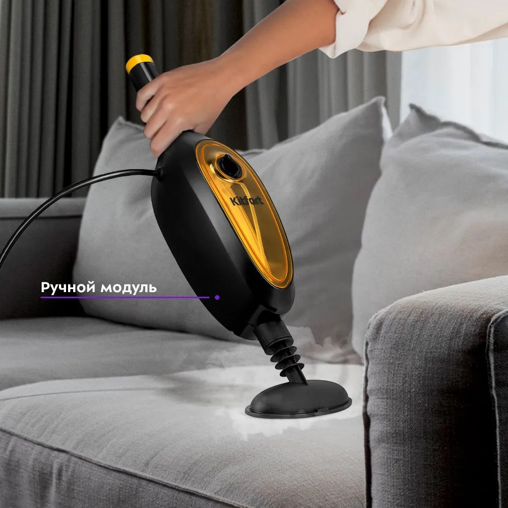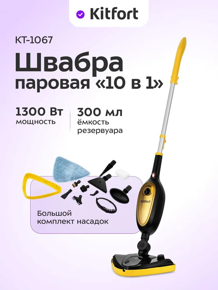 В данный момент этот товар отсутствует в продаже. Возможно, у нас найдется аналогичный или похожий товар здесь. Паровая швабра КТ-1067 — универсальное устройство, которое поможет избавиться от пыли и грязи с помощью мощной струи пара, а также продезинфицирует обрабатываемую поверхность. Уборку паровой шваброй можно проводить без чистящих средств. Конструкция «2 в 1» предусматривает наличие ручного модуля паровой швабры, который удобно использовать с насадками. С помощью насадок можно очистить большинство вещей в доме.
