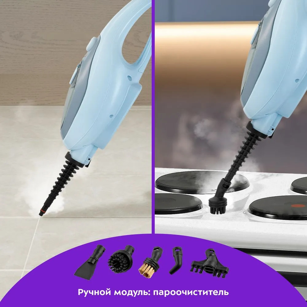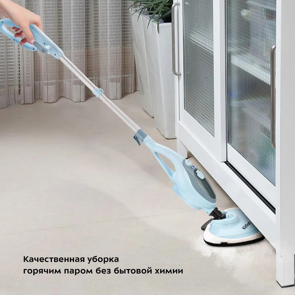 Паровая швабра КТ-1044 — универсальное устройство, которое поможет избавиться от пыли и грязи с помощью мощной струи пара, а также продезинфицирует поверхность. Она очистит раковину и плиту, зеркала и мебель без каких-либо химических средств. При отсоединении удлинительной трубки КТ-1044 превращается в ручной пароочиститель. Им можно чистить кафель и швы между плитками, сантехнику, духовки, плиты, СВЧ печи. Для усиления механического воздействия в комлекте идут ворсовые щётки и скребок.