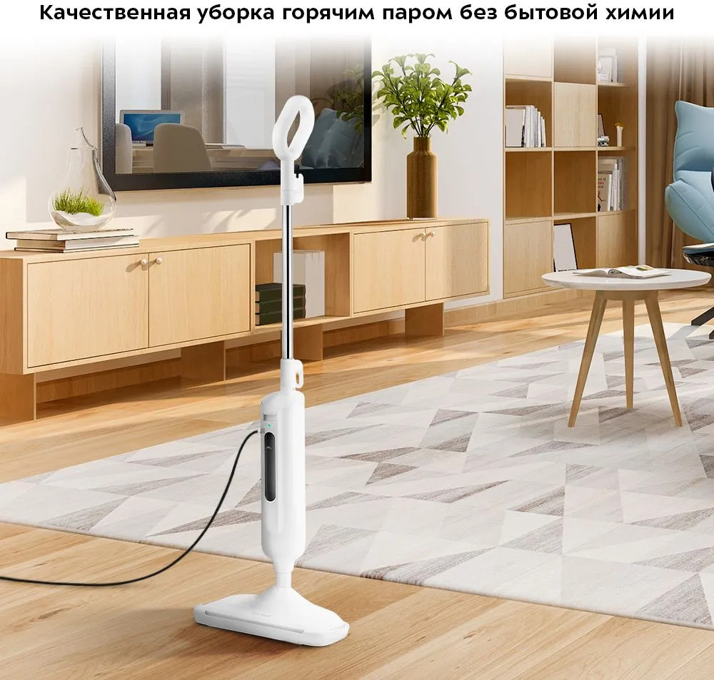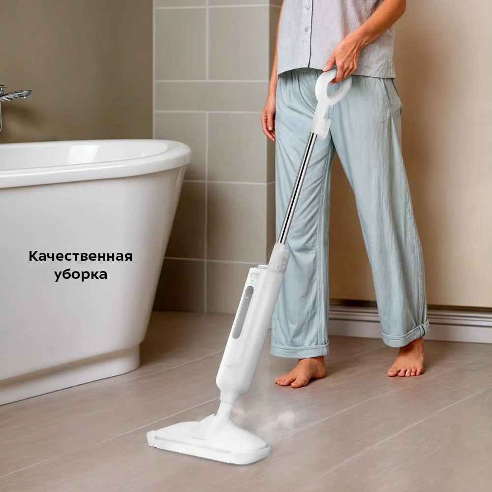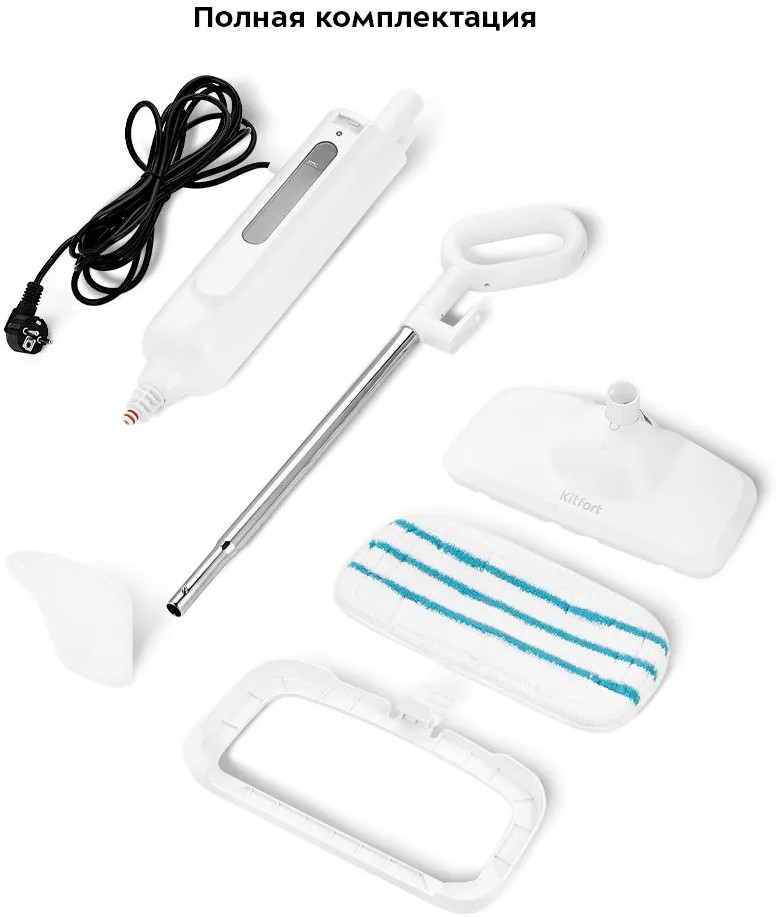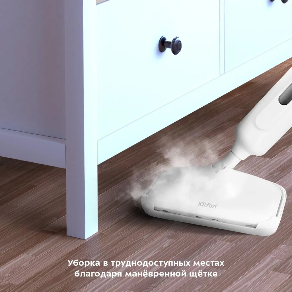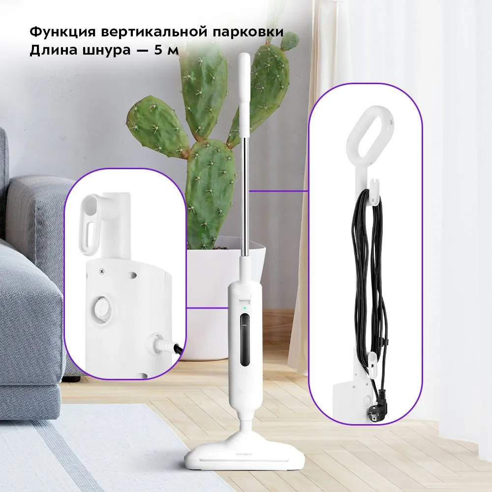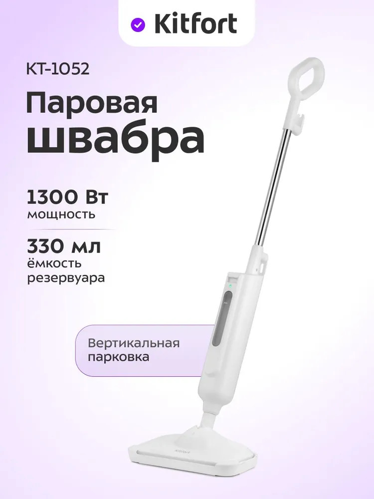 Паровая швабра КТ-1052 — универсальное устройство, которое поможет избавиться от пыли и грязи с помощью мощной струи пара, а также продезинфицирует поверхность. Высокая температура способствует процессу очистки любых загрязнений. Тряпка надёжно фиксируется на боковые липучки щётки, отлично впитывает влагу и чистит пол. Чтобы убирать ковровые покрытия с недлинным ворсом, у КТ-1052 есть рамка, которая крепится на щётку и тряпку и облегчает её скольжение по ковру.
