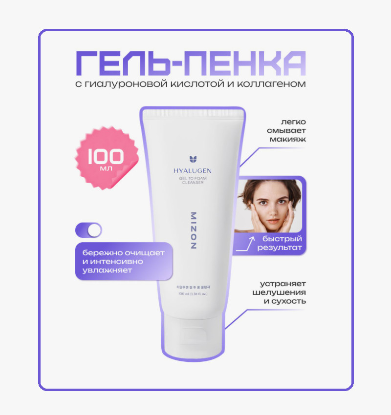 Mizon Гель-пенка для умывания «Hyalugen Gel To Foam Cleanser»