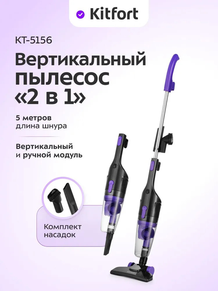 Вертикальный пылесос «2 в 1» Kitfort КТ-5156 удобен при локальной и генеральной уборке. Он компактен, всегда под рукой и легко трансформируется в ручной пылесос. Утомительная уборка превращается в увлекательное занятие, а время уборки сокращается вдвое. Конструкция «2 в 1» предусматривает наличие ручного пылесоса, который удобно использовать при локальной уборке. Ручным пылесосом можно пропылесосить углы и плинтусы, обивку мебели, пыль со шкафов, книжные полки, шкафчики на кухне или в гостиной.