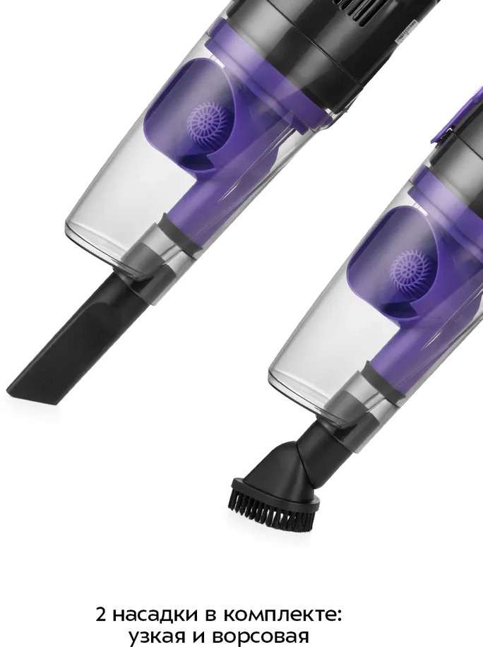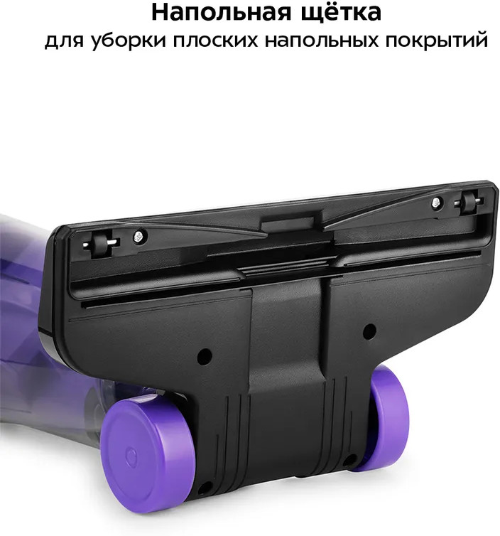 Узкая насадка поможет вычистить щели, углы, плинтусы, радиаторы батарей и другие узкие места в квартире. Ворсовая щетка можно убирать поверхности шкафов, подоконников, столов. Часть щётки с ворсом вращается на 360° для уборки труднодоступных поверхностей. Напольная щётка служит для уборки плоских напольных покрытий: линолеум, паркет, ламинат. Она легко скользит по поверхности, плотно прилегая к ней, обеспечивая качественную уборку.