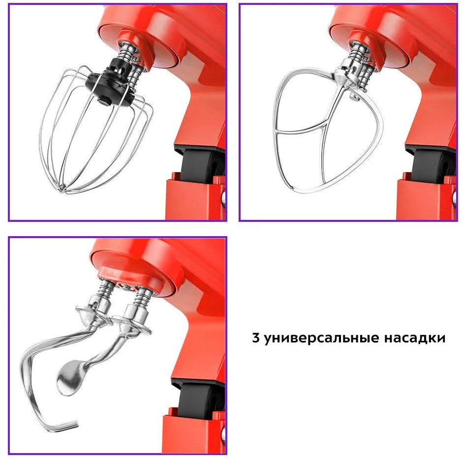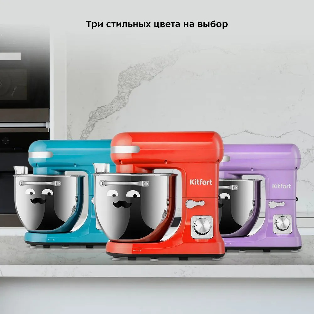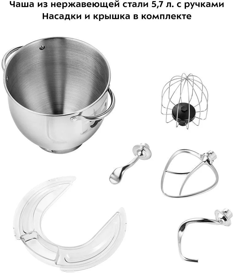 Чаша миксера ёмкостью 5.7 литра изготовлена из нержавеющей стали, так, что в ней можно смешивать даже горячие ингредиенты. Благодаря ручкам на чаше, готовить ещё удобнее. В комплекте есть всё для приготовления кулинарных шедевров — насадки, крышка и чаша. Ваша кухня станет ещё красивее благодаря яркому и стильному цвету миксера КТ-3416 — выбирайте один из трёх цветов и готовьте с ещё большим удовольствием каждый день! Любимые блюда станут ещё вкуснее.
