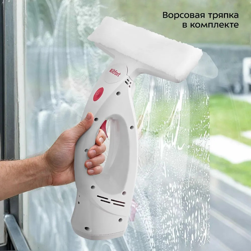 Стеклоочиститель КТ-5269 — это прибор для мойки стёкол, зеркал, кафельных и пластиковых поверхностей. В корпус прибора встроен распылитель, который позволит вам быстро и удобно намочить водой очищаемую поверхность. Помимо классического пластикового скребка в комплекте так же идёт ворсовая тряпка, которой вы можете довести очищаемую поверхность до скрипящего идеала.