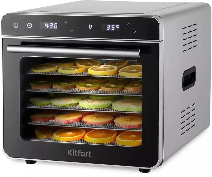Электрическая сушилка Kitfort предназначена для сушки овощей, фруктов, ягод, грибов, корнеплодов, трав и зелени, а также мяса и рыбы, хлеба. С КТ-1948 у вас всегда будет живая еда! На сушилке можно установить температуру сушки в диапазоне 35–85 °С с шагом 5 градусов. Сушилка оснащена таймером до 24 часов работы с шагом 30 минут. Благодаря компактному корпусу и оптимальному количеству поддонов сушилка для овощей и фруктов не займёт много места у вас на кухне. А стильный дизайн впишется в любой интерьер.
