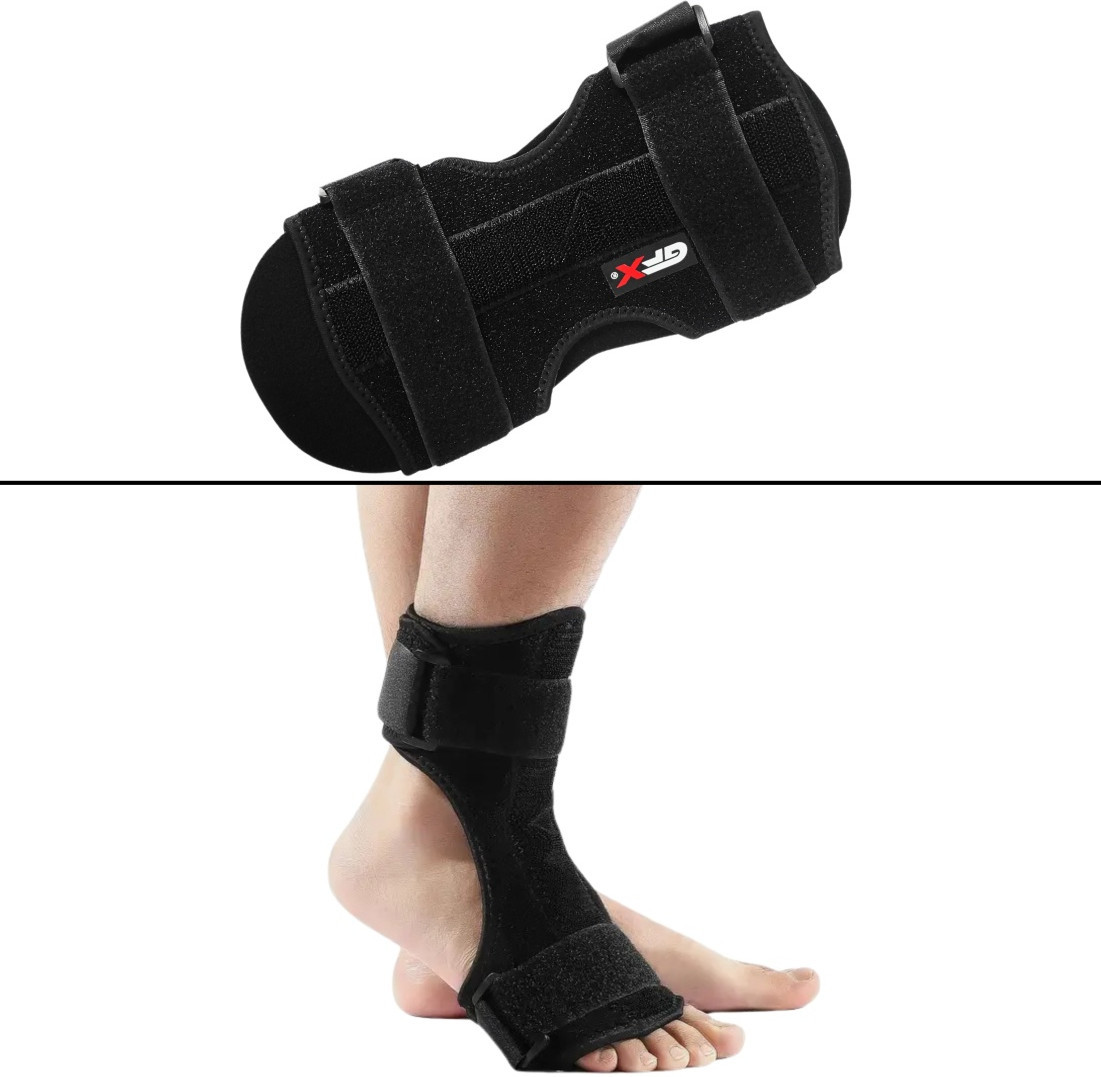 Поддержка лодыжки GFX Drop Foot Brace — ночная шина для подошвенного фасциита и фиксации голеностопа. Регулируемая повязка на лодыжку, которая стабилизирует голеностоп, снижает нагрузку на пятку при подошвенном фасциите и обеспечивает комфорт во время сна. Удобно надевается под обувь, легко регулируется ремнями, комплектуется для надежной фиксации.