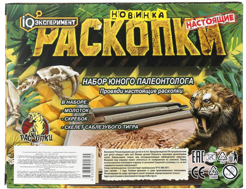 IQ Эксперимент Набор для раскопок «Скелет саблезубого тигра»-35% +36