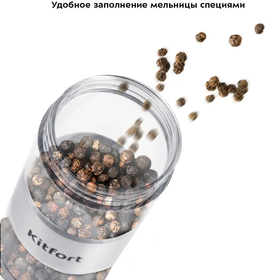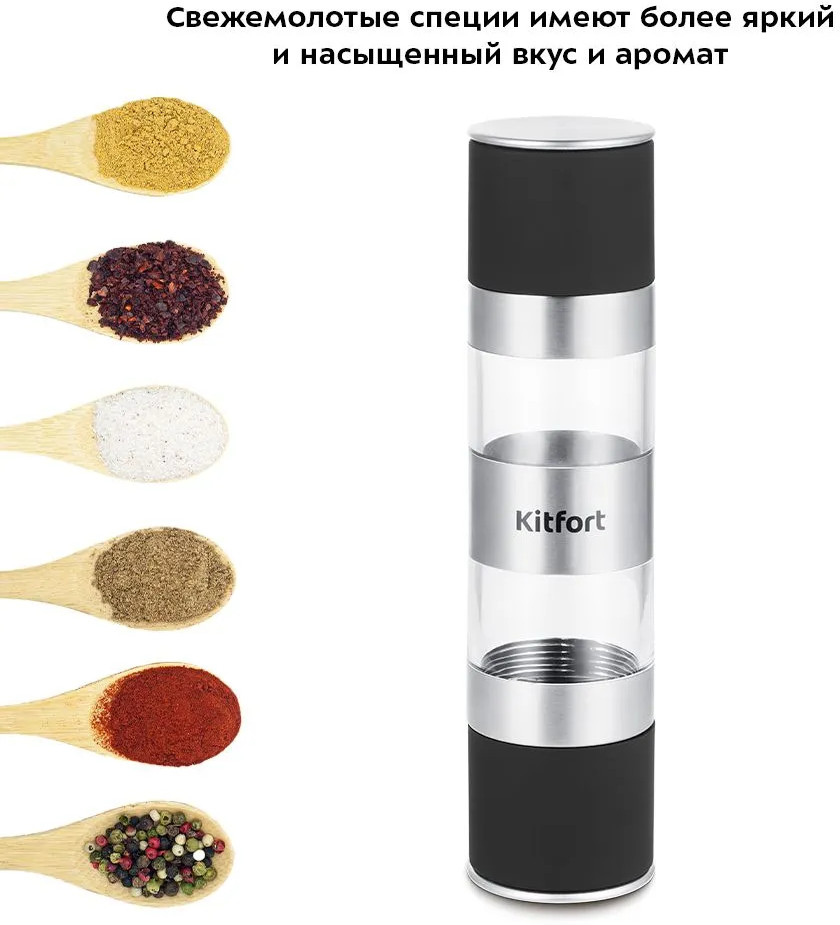 В отличие от специй, которые хранятся в уже измельченном виде, свежемолотые специи имеют более яркий и насыщенный вкус и аромат. Мельница выполнена из сочетания пластика и нержавеющей стали с прозрачными ёмкостями для специй, что позволит следить за количеством содержимого в них. Широкое горлышко ёмкостей для специй обеспечивает лёгкое и удобное заполнение мельницы специями.