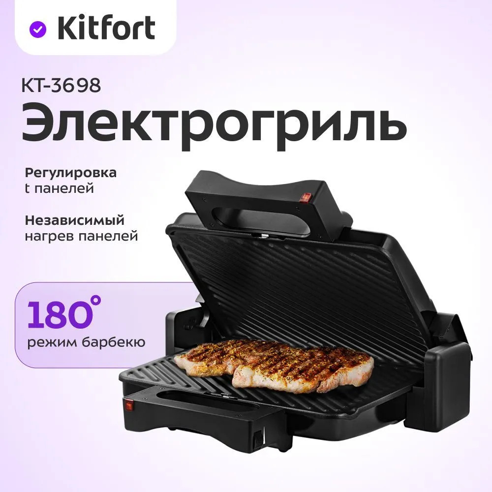 Электрогриль КТ-3698 предназначен для приготовления мяса, рыбы, овощей, сосисок, бутербродов, панини, сэндвичей, гренок, тостов и многих других блюд. Высокая температура гриля способствует быстрому приготовлению продуктов. Электрогриль КТ-3698 позволяет регулировать температуру приготовления для верхней и нижней панелей отдельно. Так вы сможете одновременно готовить разные продукты. Рядом с регуляторами температуры нанесена шкала, при включении загорается индикатор.