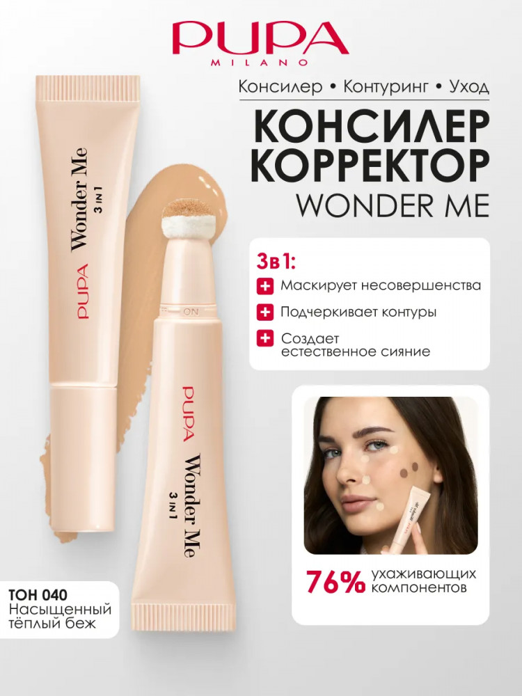 Pupa Консилер для лица многофункциональный 3 в 1, оттенок 040 Intense Warm Beige