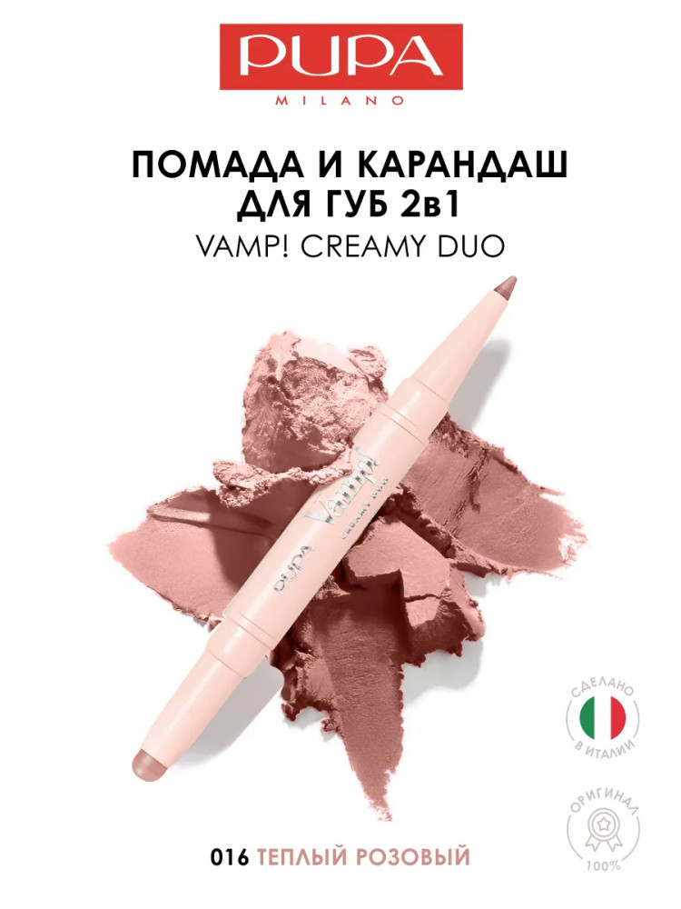 Pupa Помада-карандаш двусторонняя для губ «Creamy Duo», тон 016 Warm Rose