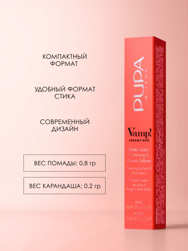 Pupa Помада-карандаш двусторонняя для губ «Creamy Duo», тон 020 Brown Nude