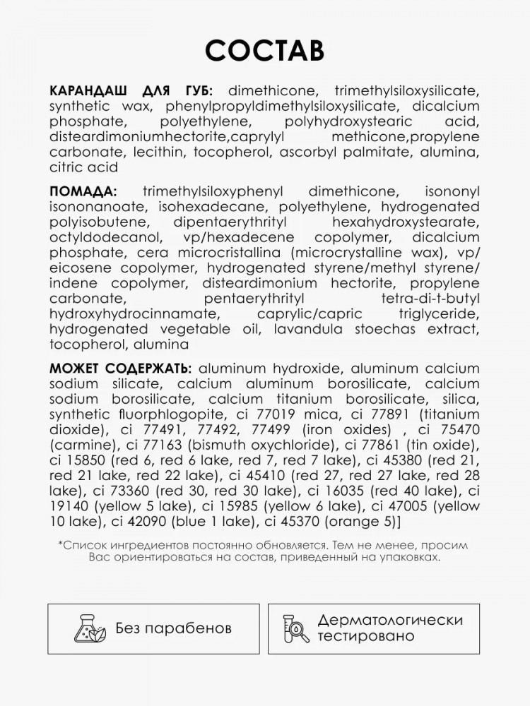Помада для губ с блесткамиПомада для губ для вечернего макияжаПомада для губ атласнаяПомада для губ водостойкаяСуперстойкая матовая помадаПомада для губ сатиноваяПомада для губ питательнаяПомада для губ гипоаллергеннаяПомада-карандаш Golden RoseПомада-стик для губПомада для губ в стикеПомада для губ коричневаяПомада для губ RUTAПерламутровая помада Помада для губ кремоваяПомада для губ краснаяПомада для губ стойкаяПомада для губ глянцеваяПомада LuxVisageПомада RELOUISПомада-бальзам для губПомада для губ в блескеПомада для губ увлажняющаяПомада для губ розоваяПомада для губ жидкаяПомады для губКарандаш для губ кремовыйКарандаш для губ мягкийКарандаш для губ гипоаллергенныйКарандаш для губ под блескКарандаш для губ и глазКарандаш для губ с точилкойАвтоматический карандаш для губКарандаш для губ автоматическийКарандаш для губ матовыйУстойчивый карандаш для губКарандаш для губ Golden RoseКарандаш для губ для четкого контураКарандаш для губ гелевыйКарандаш для губ Parisa CosmeticsКарандаш для губ Vivienne SaboКарандаш для губ под помадуКарандаш для губ контурныйКарандаш для губ стойкийВодостойкий карандаш для губКарандаш для губ водостойкийКарандаш для губКарандаши для губ