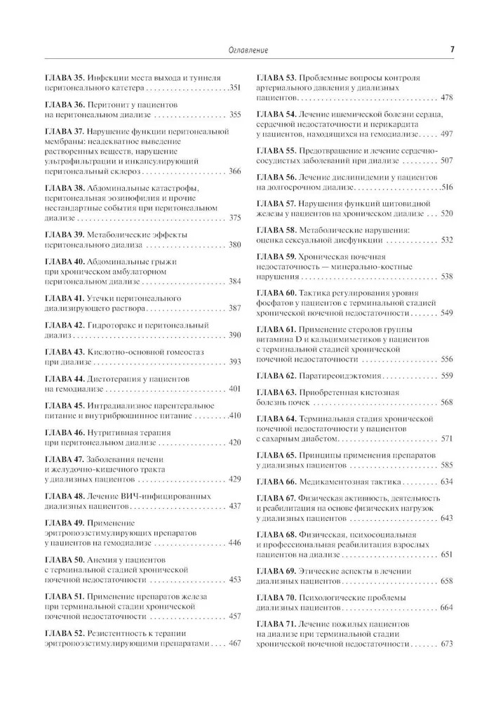 В доступной подробной форме изложены последние данные о водоподготовке, биофизике диализа, адекватности диализной терапии, диализной программе, проблемах доступа на гемодиализе и перитонеальном диализе, лекарственной терапии диализных пациентов, в том числе лечении осложнений. Широко освещены вопросы преддиализной помощи пациентам всех возрастов, подготовки к диализу и трансплантации почки. Отражены современные представления о причинах и механизмах нарушений физического функционирования пациентов с хронической болезнью почек, получающих лечение программным гемодиализом. Дана полная информация обо всех аспектах сосудистого доступа для проведения гемодиализа и перитонеального диализа.