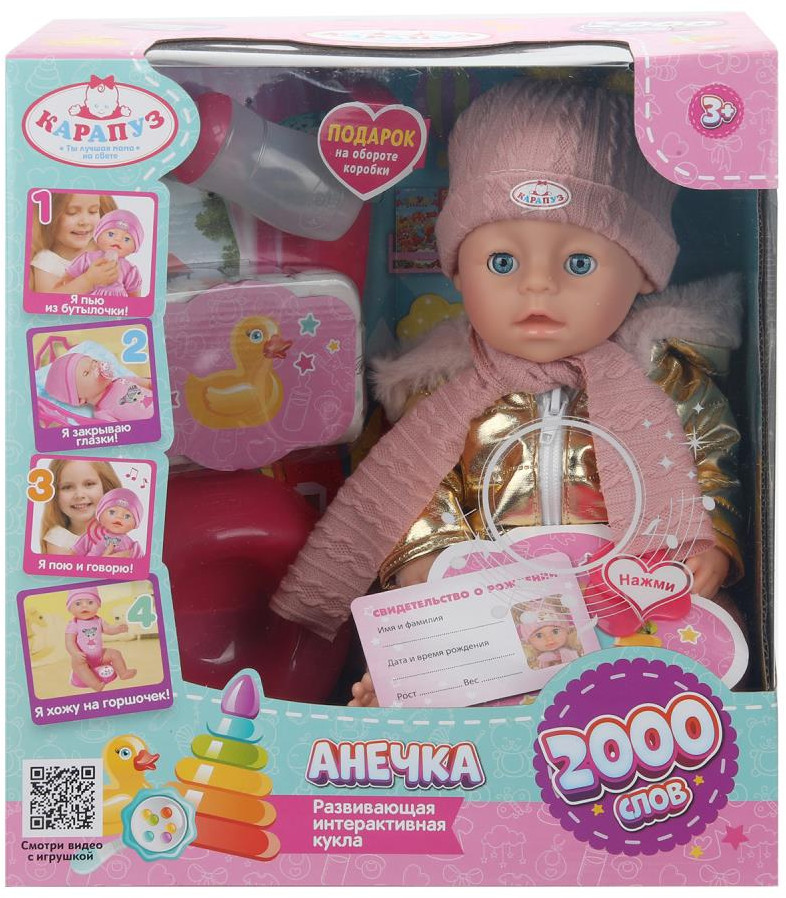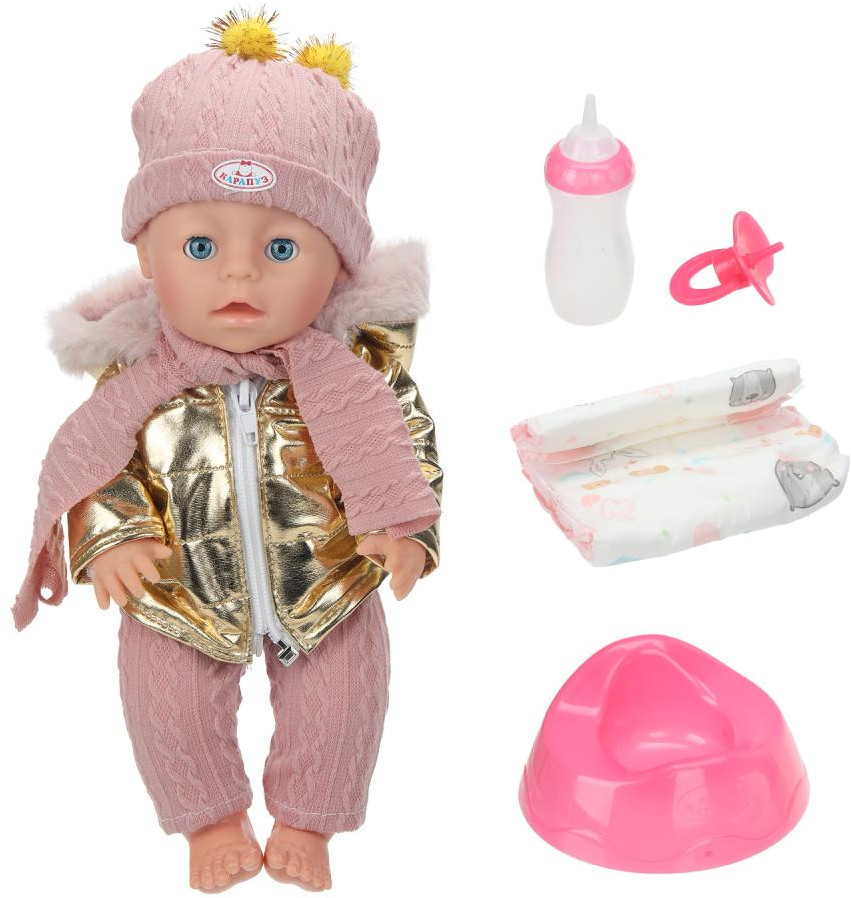 Озвученный пупс «Анечка» ТМ «Карапуз» станет прекрасным подарком для девочки. Этот милый пупс обязательно понравится вашей малышке. Анечка одета в золотистую курточку с капюшоном, также на ней вязаные шапочка и шарф. Одежда легко надевается и снимается. С такой куколкой девочка может играть в самые разные игры, гулять с ней, петь песни, кормить, переодевать, рассказывать сказки и укладывать спать. |