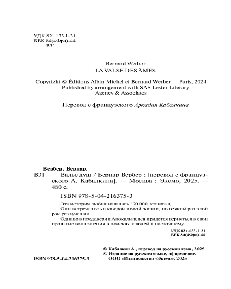 💳 Оплатить за товар можно при получении 🇰🇿 Есть бесплатная доставка по Казахстану от 1 дня 🎁 Копите бонусы с каждой покупки Серия: Бесконечная вселенная Бернара Вербера (новое оформление) Чтобы воссоединиться в настоящем, нужно... отправиться в свои прошлые жизни. Эта история любви началась 120 000 лет назад. Они встречались в каждой новой жизни, но всякий раз злой рок разлучал их. Однако в преддверии Апокалипсиса придется вернуться в свои прошлые воплощения в поисках ключей к настоящему. |