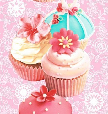 | Полотенце вафельное "Капкейки" (50х60), розовое
