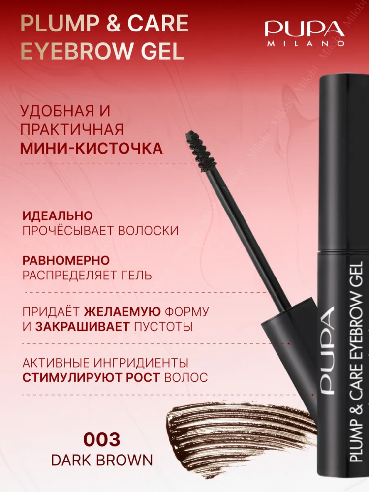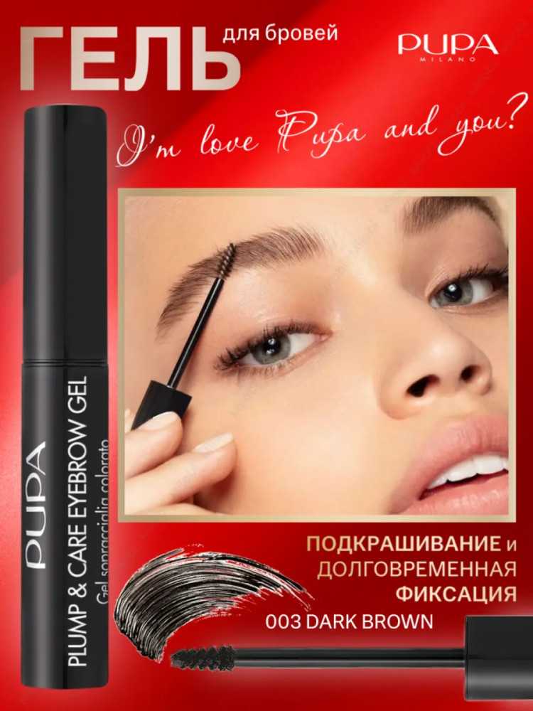 Pupa Гель для бровей укрепляющий фиксирующий «Plump and Care Eyebrow Gel», оттенок 003 Dark Drown