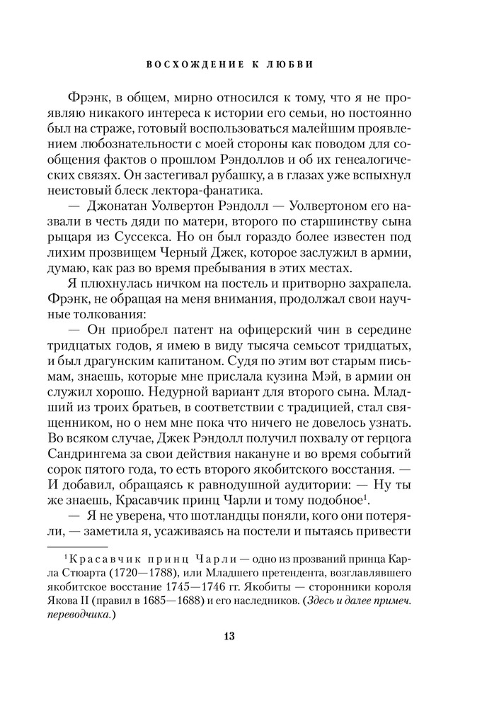 Довольно увлекательный исторический роман) То как погружаешься с головой в атмосферу Шотландии 18 века, ничего не сказать) Читается легко и просто, да так, что за временем не уследить. Но взяться за вторую часть книги, как такового желания не вызывает.