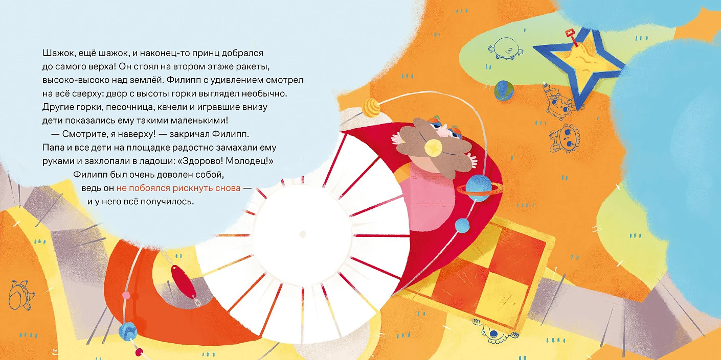 💳 Оплатить за товар можно при получении 🇰🇿 Есть бесплатная доставка по Казахстану от 1 дня 🎁 Копите бонусы с каждой покупки Серия: Маленький герой Филипп вместе с папой исследуют окрестности замка и находят большую горку-ракету. Маленький принц учится преодолевать серьезные препятствия на пути к заветному сокровищу и открывает для себя мир с необычной стороны. |
