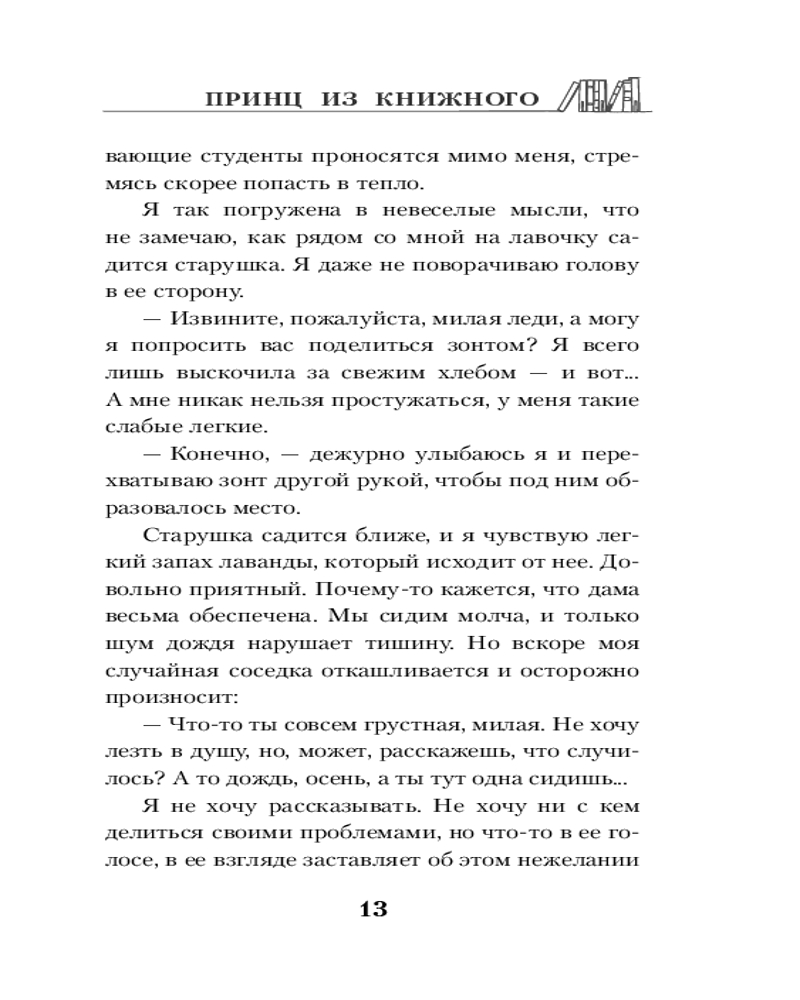Серия: Осенняя романтика Леся Веселова окончательно запуталась в жизни. По собственной глупости провалила экзамены и не поступила в университет. Рассорилась с лучшим другом, обвинив его в списывании. И почти смирилась с клеймом неудачницы. Случайная встреча в осеннем парке приводит Лесю в заброшенный книжный магазинчик: когда-то он был любимым местом книголюбов, но не смог пережить трудные времена. Теперь у Леси есть цель: подарить «Магии книг» новую жизнь. А еще у нее есть принц. Только она пока об этом не знает. Хотя на самом деле давным-давно в него влюблена. |
