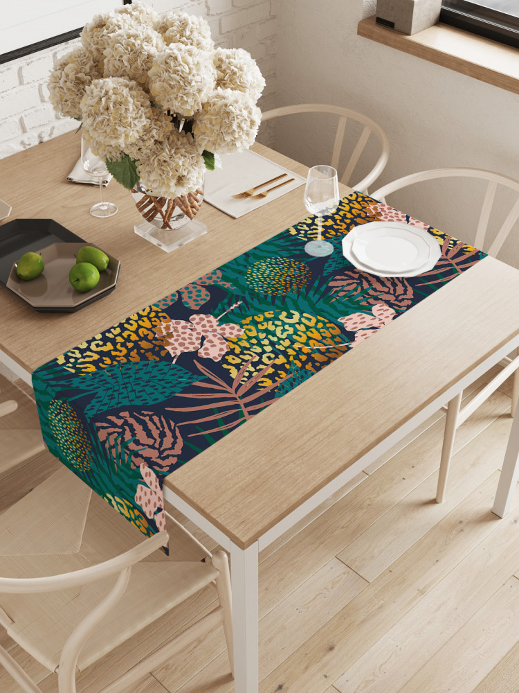 JoyArty Дорожка для сервировки «Пальмовые листья , цветы и леопард»