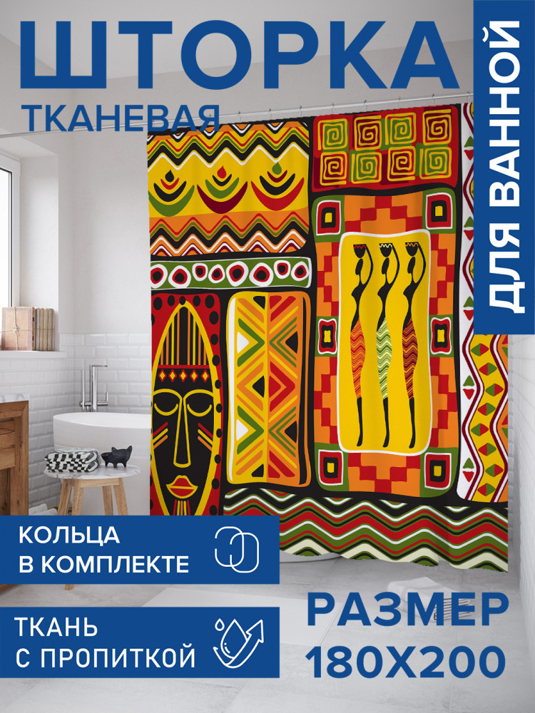 JoyArty Штора для ванной с водоотталкивающей пропиткой «Африканский этнос»-30% +83