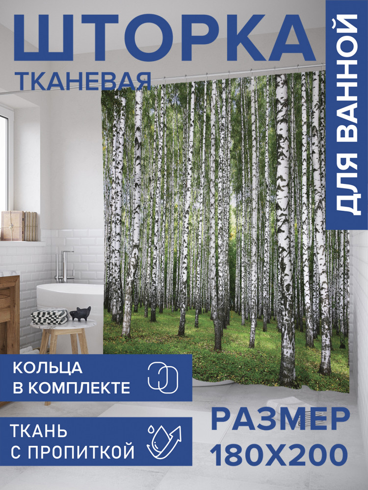 JoyArty Штора для ванной с водоотталкивающей пропиткой «Березовый край»-30% +83