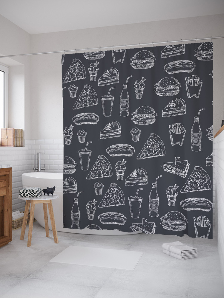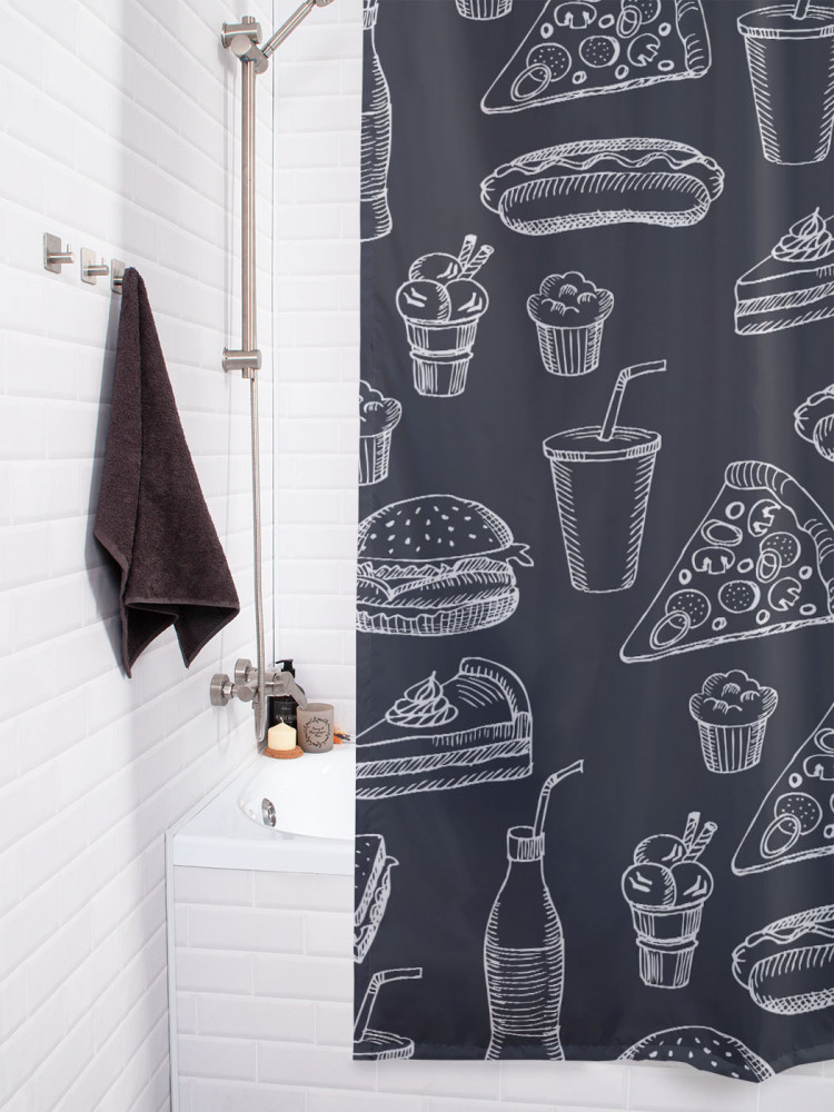 JoyArty Штора для ванной с водоотталкивающей пропиткой «Бледный фаст-фуд»-20%
