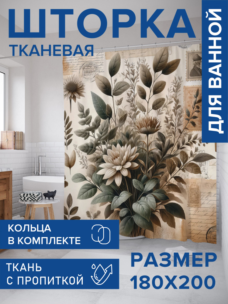 JoyArty Штора для ванной с водоотталкивающей пропиткой «Букет и марки»-30% +83
