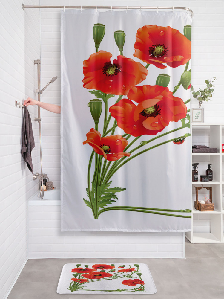 JoyArty Штора для ванной с водоотталкивающей пропиткой «Букет маков»-30% +83