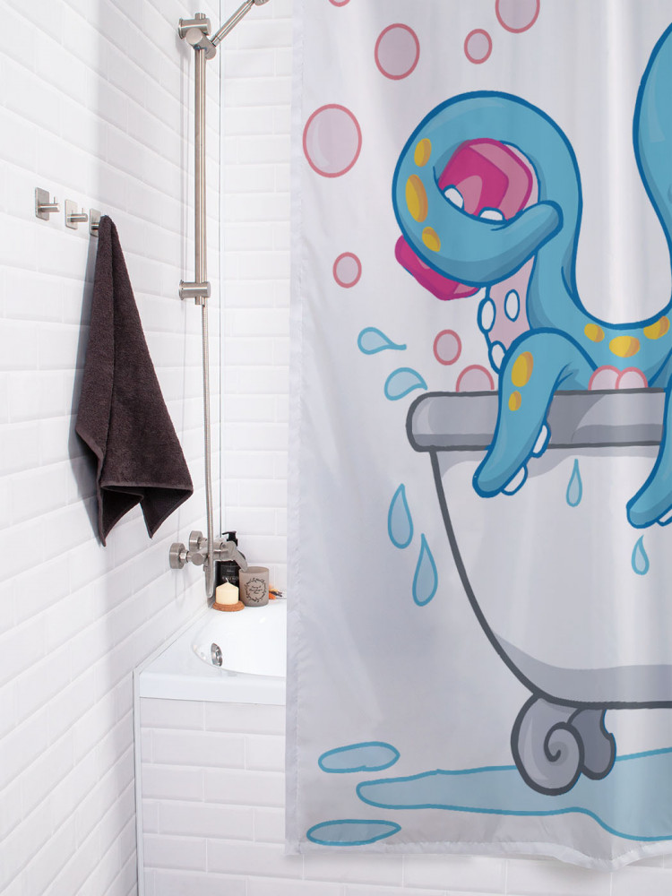 JoyArty Штора для ванной с водоотталкивающей пропиткой «Веселый осьминожек»-20% +94