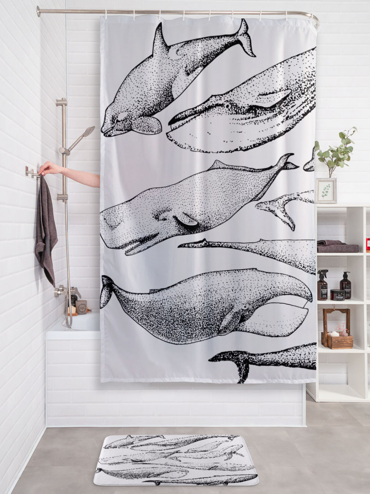 JoyArty Штора для ванной с водоотталкивающей пропиткой «Виды китов»-30% +83