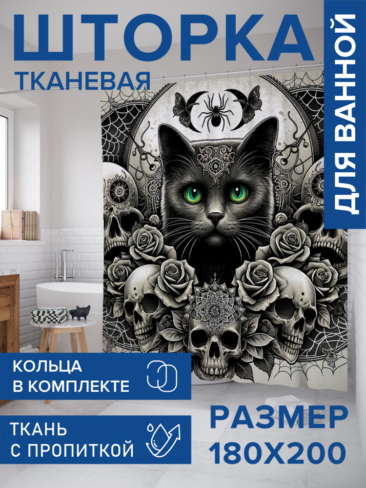 JoyArty Штора для ванной с водоотталкивающей пропиткой «Готическая кошка»-30% +83