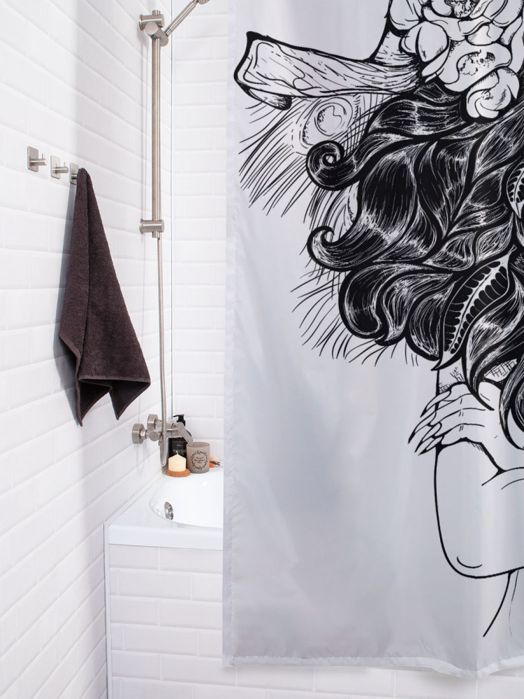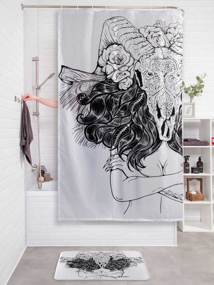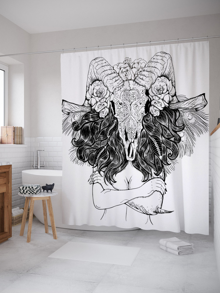 JoyArty Штора для ванной с водоотталкивающей пропиткой «Девушка с черепом барана»-20%