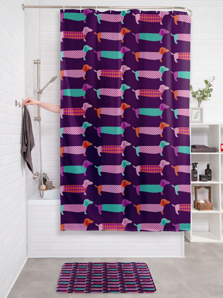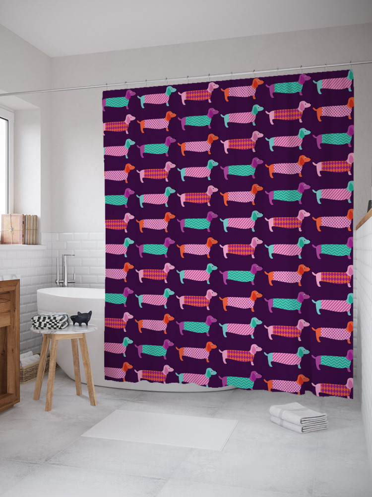 JoyArty Штора для ванной с водоотталкивающей пропиткой «Длинные таксы»+118