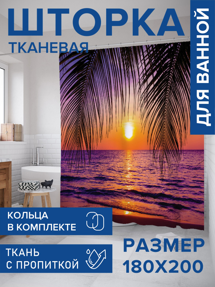 JoyArty Штора для ванной с водоотталкивающей пропиткой «Закат под пальмой»-30% +83